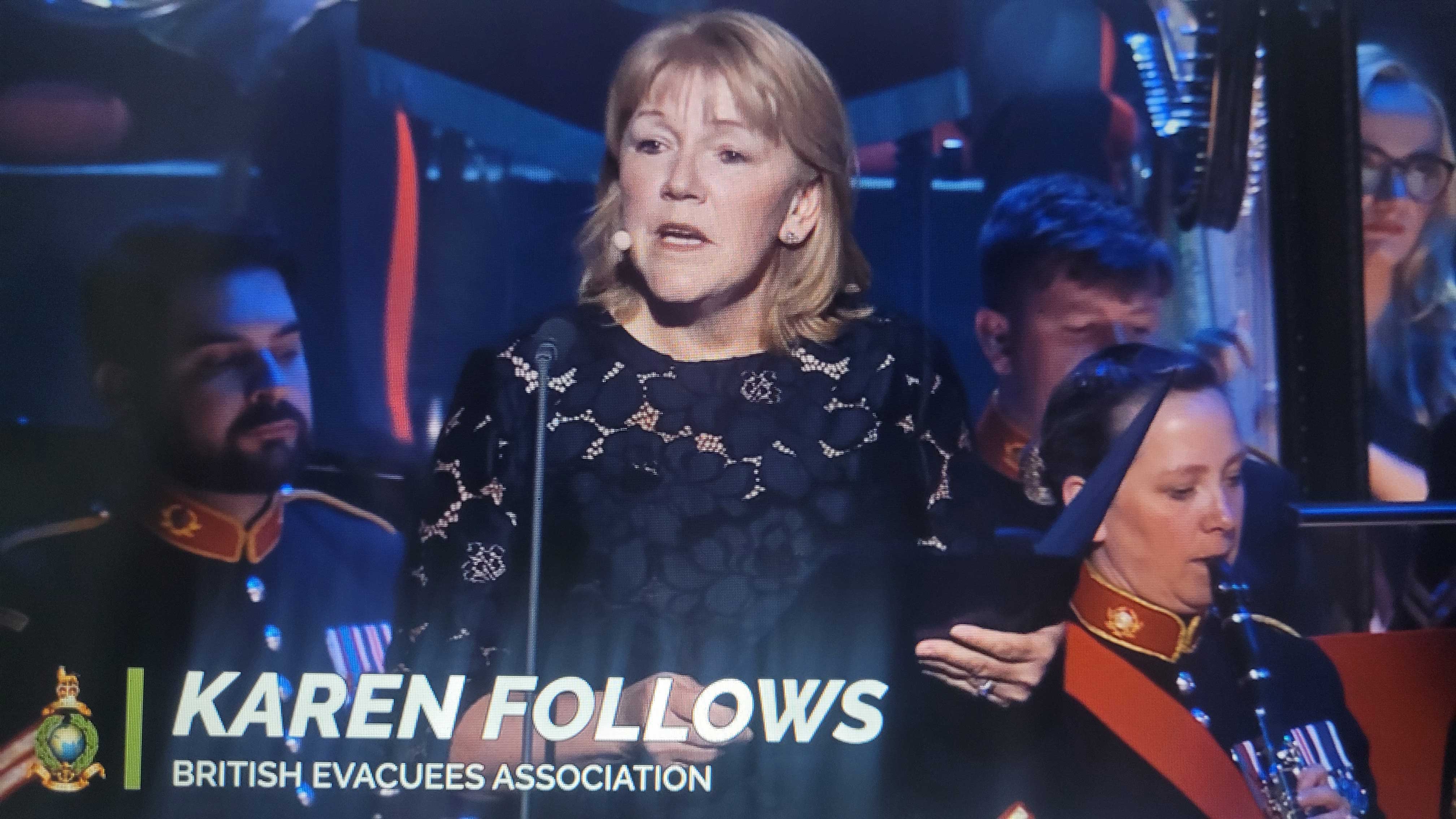 One of our most exciting projects recently has been The Mountbatten Festival of Music 2025 which was held at The Royal Albert Hall. Following an appeal in our ‘Evacuee’ magazine, three of our members, Dr Peter Lane, Mr Jim Porter and Mrs Sonya Brett, were recorded telling their incredible evacuation stories. These stories were played on a large screen at The Royal Albert Hall whilst a specially composed piece of music to accompany the story of the Evacuation was played by The Massed Bands of the Royal Marines. The Manager of The BEA, Mrs Karen Follows, was also asked to make a speech on stage during each of the three performances. Each of the concerts, two evening and one matinee, were sold out and the capacity of The Royal Albert Hall is 5272 people. Peter, Jim and Sonya were also present in the audience to see their story being told. The Association was also featured in the event programme.